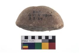 | Description / विवरण | A partially broken specimen of oval shaped polisher with oval flat base. |