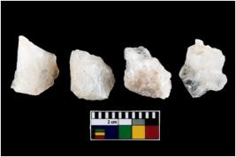 | Description / विवरण | There are n-4 of intact utilized flake cores made up of Quartz. Some of them have bulge of percussion and some are flat flakes. |