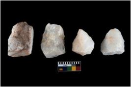 | Description / विवरण | There are n-4 of cores. All are made up of Quartz. All of them are intact fully fluted cores without any trace of crested ridge flakes. |
