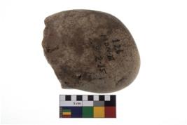 | Description / विवरण | A hammerstone round in shape with one working edge. |