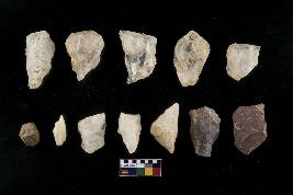 | Description / विवरण | Microlithic blade cores of varying sizes and raw material. Three of among these are fluted cores. |