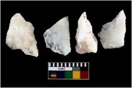 | Description / विवरण | There are n-4 of intact utilized flake cores made up of Quartz. Some of them have bulge of percussion and some are flat flakes. |