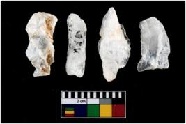 | Description / विवरण | There are n-4 of intact utilized flake cores made up of Quartz. Some of them have bulge of percussion and some are flat flakes. |