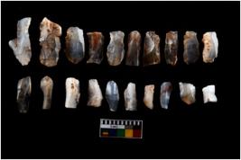 | Description / विवरण | The assemblage is made up of n 20 specimens of mesolithic blades. These are slender micro blades detached from cylindrical cores. In proportion these blades are longer wider and thicker than geometric variety of microliths. |