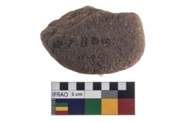 | Description / विवरण | A partially broken specimen of an oval shaped rubber stone with oval section and flat surface. |