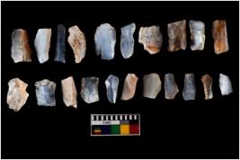 | Description / विवरण | The assemblage is made up of n 20 specimens of mesolithic blades. These are slender micro blades detached from cylindrical cores. In proportion these blades are longer wider and thicker than geometric variety of microliths. |
