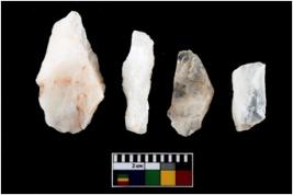 | Description / विवरण | There are n-4 of intact utilized flake cores made up of Quartz. Some of them have bulge of percussion and some are flat flakes. |