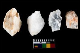 | Description / विवरण | There are n-4 of intact utilized flake cores made up of Quartz. Some of them have bulge of percussion and some are flat flakes. |