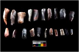 | Description / विवरण | The assemblage is made up of n 20 specimens of mesolithic blades. These are slender micro blades detached from cylindrical cores. In proportion these blades are longer wider and thicker than geometric variety of microliths. |