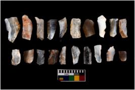 | Description / विवरण | The assemblage is made up of n 20 specimens of mesolithic blades. These are slender micro blades detached from cylindrical cores. In proportion these blades are longer wider and thicker than geometric variety of microliths. |