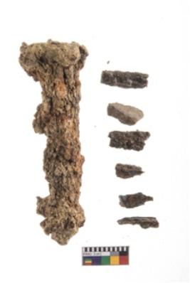 | Description / विवरण | A heavy duty iron nail for timber work, along with 6 fragments |