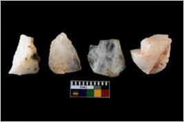 | Description / विवरण | There are n-4 of intact utilized flake cores made up of Quartz. Some of them have bulge of percussion and some are flat flakes. |