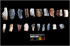 | Description / विवरण | The assemblage is made up of n 20 specimens of mesolithic blades. These are slender micro blades detached from cylindrical cores. In proportion these blades are longer wider and thicker than geometric variety of microliths. |