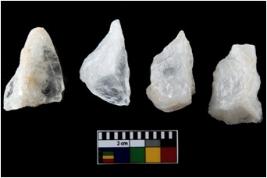 | Description / विवरण | There are n-4 of intact utilized flake cores made up of Quartz. Some of them have bulge of percussion and some are flat flakes. |
