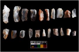 | Description / विवरण | The assemblage is made up of n 20 specimens of mesolithic blades. These are slender micro blades detached from cylindrical cores. In proportion these blades are longer wider and thicker than geometric variety of microliths. |
