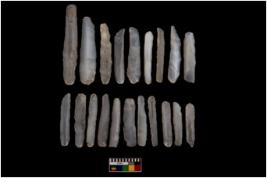 | Description / विवरण | These are 20 microlithic blades made on chalcedony. Among all, 7 are backed blades, 2 denticulated blades and 1 crested guiding ridge blades. |