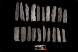 | Description / विवरण | These are 20 microlithic blades made on chalcedony. Among all, 4 are backed blades, 2 denticulated blades and 1 crested guiding ridge blades. |
