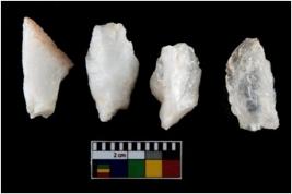 | Description / विवरण | There are n-4 of intact utilized flake cores made up of Quartz. Some of them have bulge of percussion and some are flat flakes. |