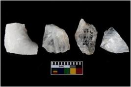 | Description / विवरण | There are n-4 of intact utilized flake cores made up of Quartz. Some of them have bulge of percussion and some are flat flakes. |