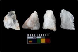 | Description / विवरण | There are n-4 of intact utilized flake cores made up of Quartz. Some of them have bulge of percussion and some are flat flakes. |