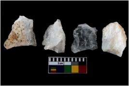 | Description / विवरण | There are n-4 of intact utilized flake cores made up of Quartz. Some of them have bulge of percussion and some are flat flakes. |