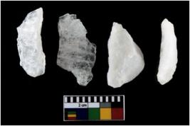 | Description / विवरण | There are n-4 of intact utilized flake cores made up of Quartz. Some of them have bulge of percussion and some are flat flakes. |