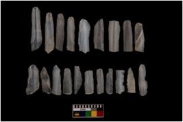 | Description / विवरण | These are 20 microlithic blades made on chalcedony. Among all, 5 are backed blades. |