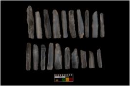 | Description / विवरण | These are 20 microlithic blades made on chalcedony. Among all, 11 are backed blades, 2 denticulated blades and 2 crested guiding ridge blades. |