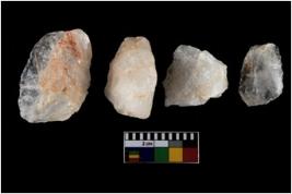 | Description / विवरण | There are n-4 of intact utilized flakes made up of Quartz. Some of them have bulge of percussion and some are flat flakes. |