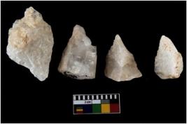 | Description / विवरण | There are n-4 of intact utilized flakes made up of Quartz. Some of them have bulge of percussion and some are flat flakes. |