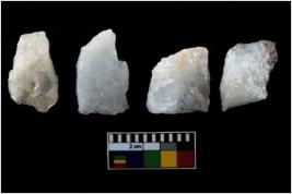 | Description / विवरण | There are n-4 of intact utilized flakes made up of Quartz. Some of them have bulge of percussion and some are flat flakes. |