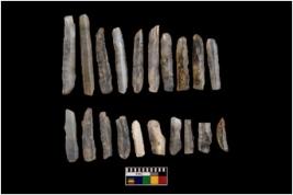 | Description / विवरण | These are 20 microlithic blades made on chalcedony. Among all, 4 are backed blades and 2 crested guiding ridge blades. |