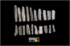 | Description / विवरण | These are 20 microlithic blades made on chalcedony. Among all, 2 are backed blades and 1 crested guiding ridge blade. |