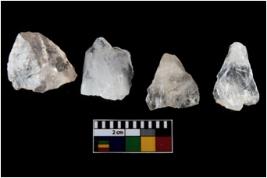 | Description / विवरण | There are n-4 of intact utilized flakes made up of Quartz. Some of them have bulge of percussion and some are flat flakes. |