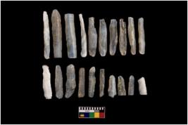 | Description / विवरण | These are 20 microlithic blades made on chalcedony. Among all, 2 are backed blades. |