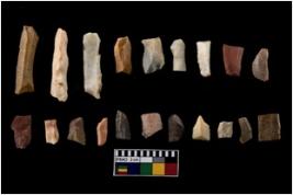 | Description / विवरण | There are n-20 of microliths. All are made up of chert. Some of them are partially broken. They show variation in colour, size and shape. Some of them are blunted back baldes, points, triangles, trapezes, crescent and truncated blades. |