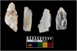 | Description / विवरण | There are n-4 of intact utilized flakes made up of Quartz. Some of them have bulge of percussion and some are flat flakes. |