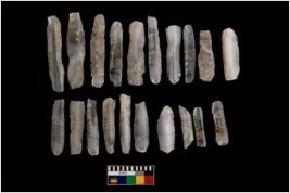 | Description / विवरण | These are 20 microlithic blades made on chalcedony. Among all, 2 are backed blades and 3 crested guiding ridge blade. |