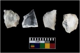 | Description / विवरण | There are n-4 of intact utilized flakes made up of Quartz. Some of them have bulge of percussion and some are flat flakes. |
