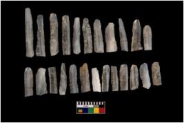 | Description / विवरण | These are 20 microlithic blades made on chalcedony. Among all, 3 are backed blades and 6 crested guiding ridge blade. |