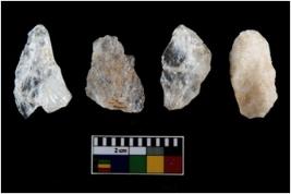 | Description / विवरण | There are n-4 of intact utilized flakes made up of Quartz. Some of them have bulge of percussion and some are flat flakes. |