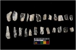 | Description / विवरण | A set of 20 intact microlithic blades, made of quartz. All these blades have retouching and sharp edges. |