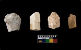 | Description / विवरण | There are n 4 Number of cores with crested ridge flakes, most of them are tapering at one end with sharp edges. |