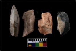 | Description / विवरण | There are n-4 of intact utilized flakes made up of Quartz. Some of them have bulge of percussion and some are flat flakes. |
