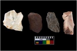 | Description / विवरण | There are n-4 of intact utilized flakes made up of Quartz. Some of them have bulge of percussion and some are flat flakes. |
