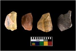 | Description / विवरण | There are n-4 of intact utilized flakes made up of Quartz. Some of them have bulge of percussion and some are flat flakes. |