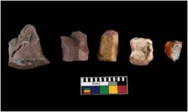 | Description / विवरण | There are n 5 Number of cores with crested ridge flakes, most of them are tapering at one end with sharp edges. |
