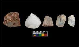| Description / विवरण | There are n 5 Number of cores with crested ridge flakes, most of them are tapering at one end with sharp edges. |