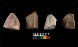 | Description / विवरण | There are n 4 Number of cores with crested ridge flakes, most of them are tapering at one end with sharp edges. |