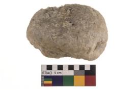 | Description / विवरण | A partially broken specimen of roughly round shaped hammer stone with battered periphery along with the circumference. |